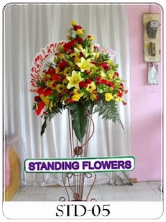 - Bunga Standing, bunga standing terbagi atas dua jenis yaitu bunga standing besi dan bunga krans duka cita (rangkaian bunga ini hanya dikhususkan untuk memberikan ucapan turut berduka cita.